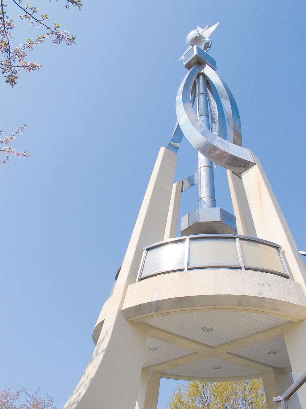 山口県下松市の近代的建造物「星の塔」。下松のシンボルである星をテーマにした塔で、下松公園の頂上に立っています。デザインは市民公募で決まりました。(高さ約19m)