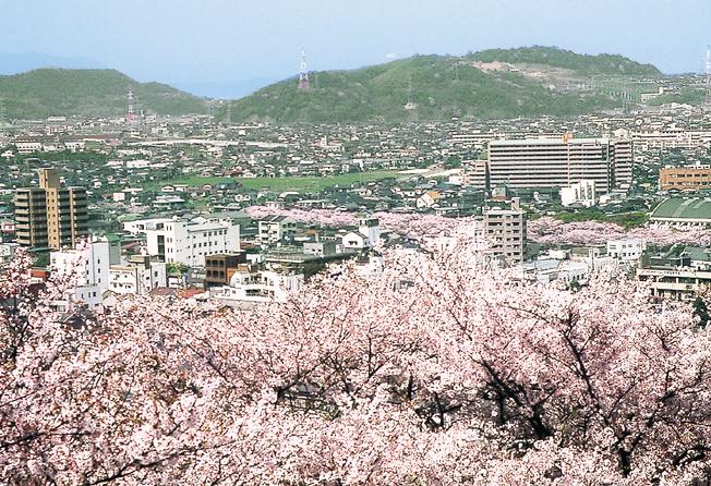 山口県下松市の公園「下松公園/さくら」。市内を一望できる公園で、市のシンボルである「星の塔」が建てられています。春になると満開の桜とともに多くの人でにぎわいます。なお、敷地内にあるテニスコート等、使用の際に申請が必要となる設備もあります。