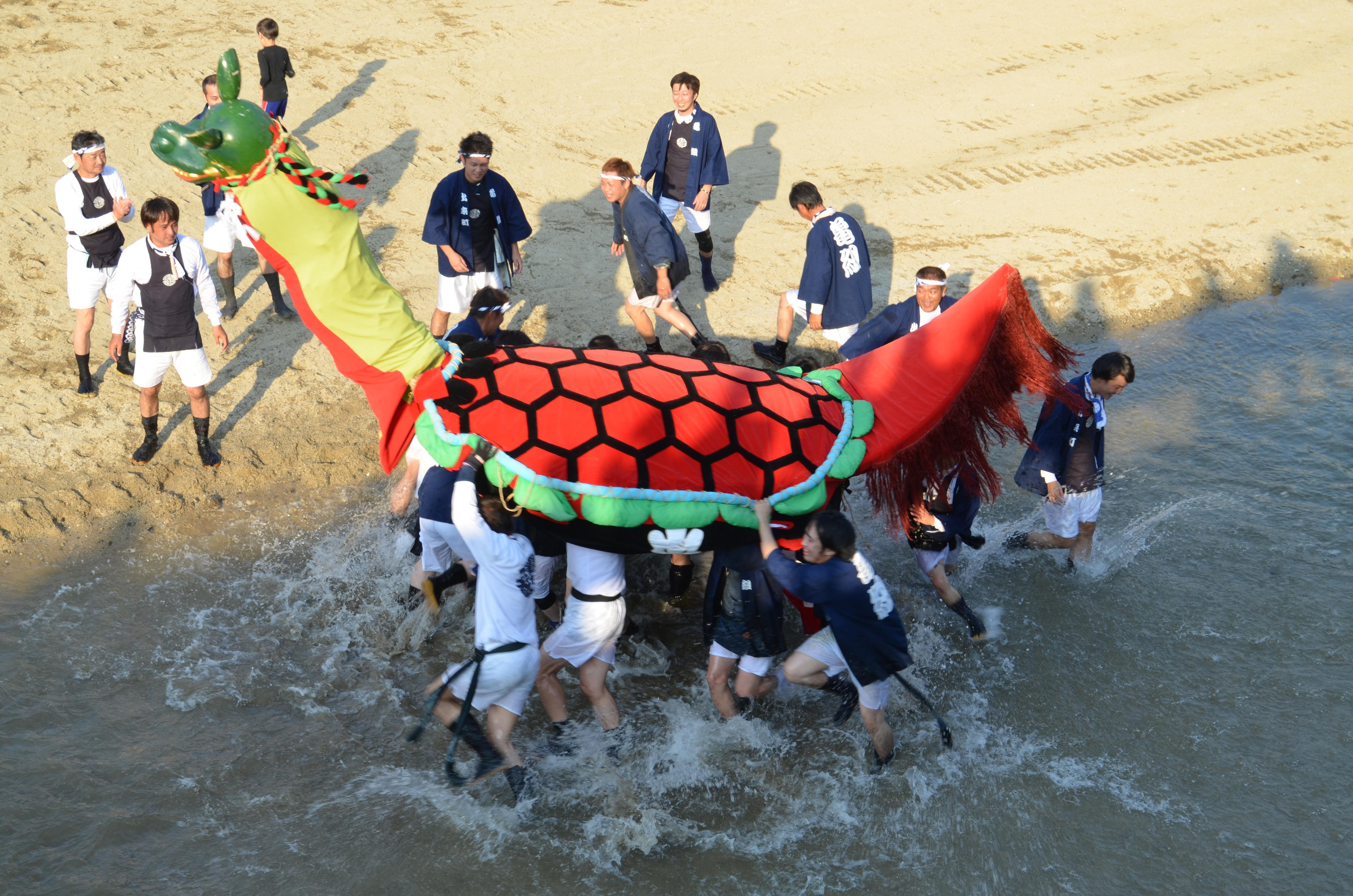 熊本県宇城市の行事・祭事「小川阿蘇神社大祭」。小川阿蘇神社をはじめ、小川町の4地区で秋の収穫を祝い秋祭りが盛大に行われます。獅子舞や亀蛇舞、子供神輿などが奉納される。(毎年10月15日開催)