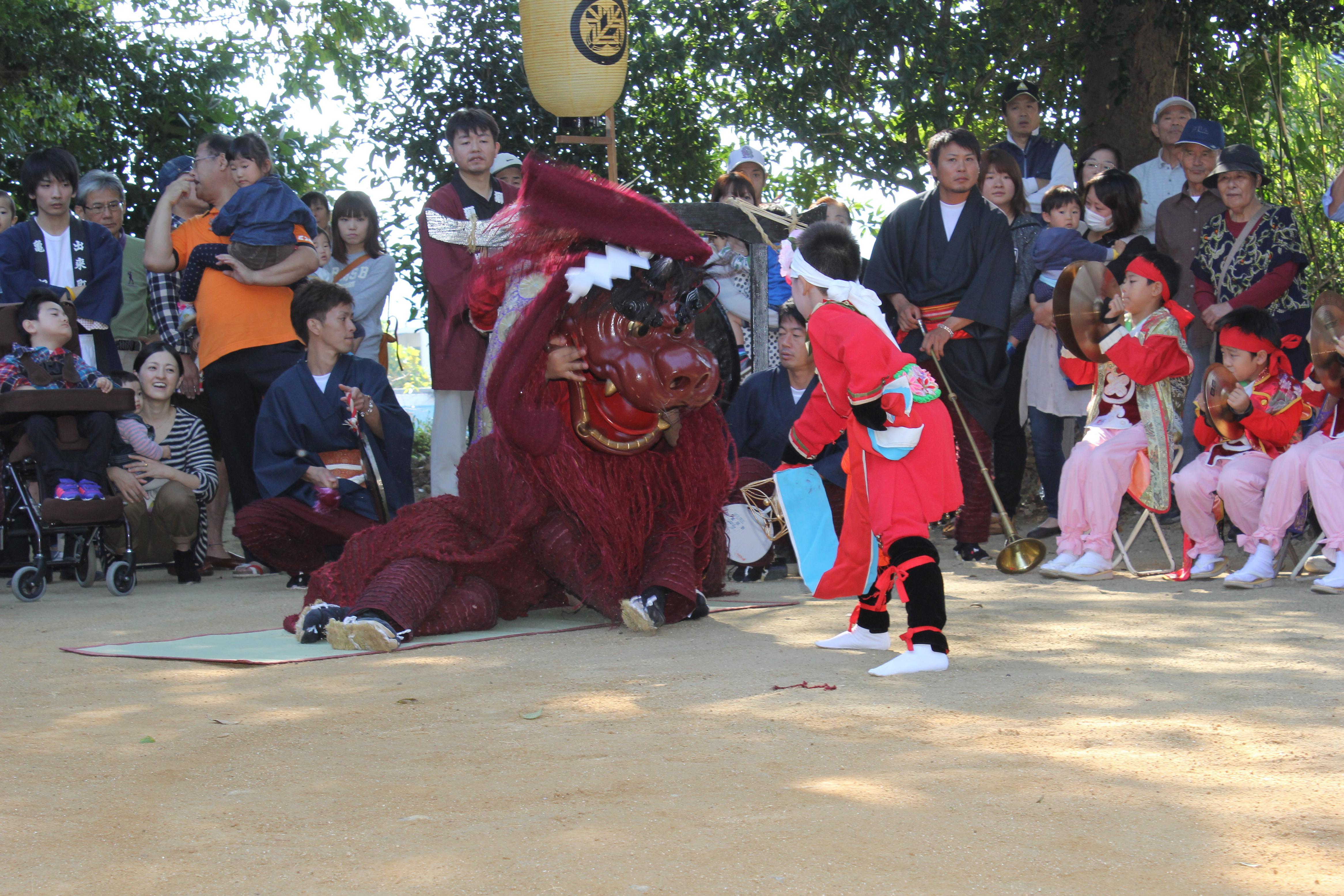 熊本県宇城市の郷土芸能「小川阿蘇神社のとこせい(奴舞)」。毎年10月15日に行われる秋季大祭で奴舞(やっこまい)、獅子舞、亀蛇舞(きだまい)が奉納されます。奴舞はその掛け声から「とこせい」と呼ばれており、奴長(やっこちょう)と呼ばれる青年を先頭に地元の小学生から保育園児数名で大名行列を演じます。