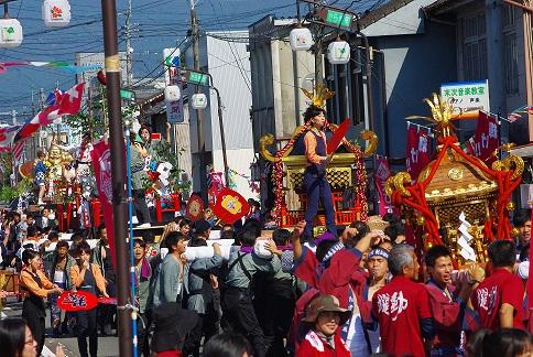 熊本県多良木町の行事・祭事「恵比須神社秋季大祭」。商売繁盛や健康と幸福をもたらすといわれている「えびす様」を祀る恵比須神社の大祭は、毎年10月20日・21日に行われます。こども神輿やおとな神輿が町中を所狭しと練り歩き祭りを盛り上げます。