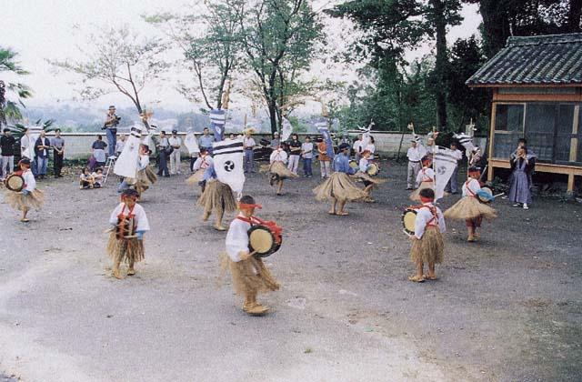 大分県杵築市の行事・祭事「若宮八幡社秋祭り(若宮楽)」。「楽の市」とも呼ばれている。楽打ちは地元の小中学生が中心となり、腰ミノにワラジばきといういでたちで幟を背中に差して、胸につけた太鼓をたたきながら踊ります。