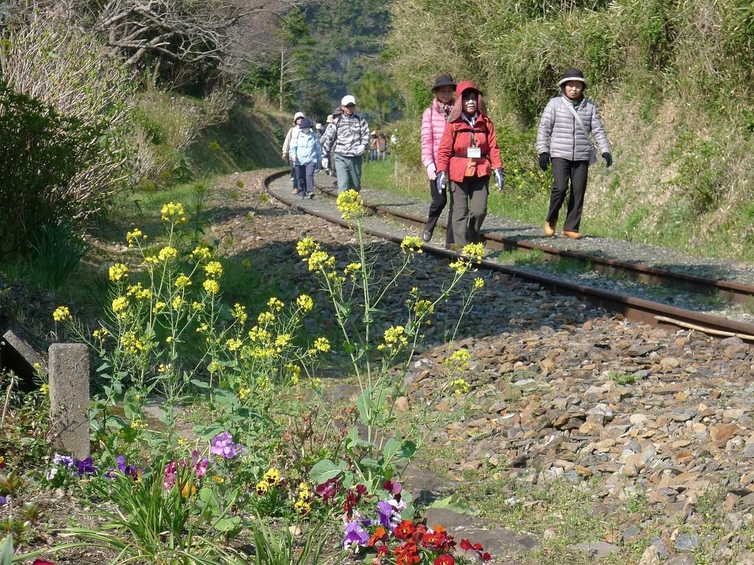 宮崎県日之影町のハイキングコース「森林セラピーロードTR鉄道跡地散策コース」。高千穂鉄道から無償譲渡された「吾味駅」~「日向八戸駅」~「槙峰駅」間を整備しました。線路には駅舎、鉄橋、レール、枕木など昔の姿をそのまま残しています。かつて、列車が駆け抜けた鉄道に思いを馳せて,列車での旅気分を楽しむことができます。