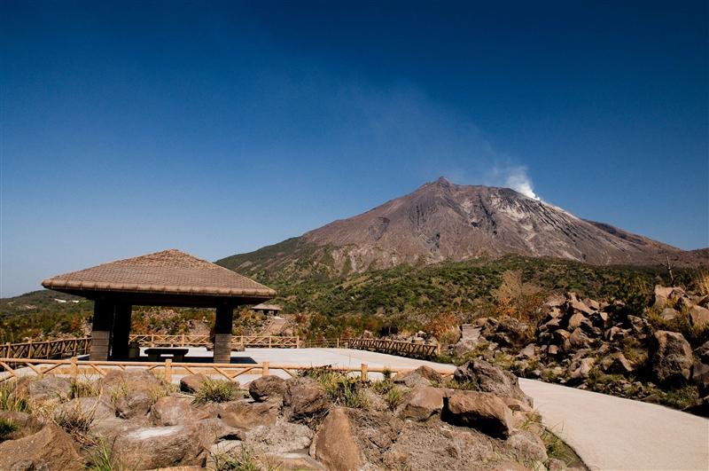 鹿児島県鹿児島市の展望施設「有村溶岩展望所」。大正3(1946)年の大爆発で流出した溶岩原の小高い丘にあり、360度広がる眺めが望めます。全長1kmに及ぶ溶岩遊歩道の途中にあり、世界的活火山「桜島」の迫力と錦江湾を手にとるように望むことができます。