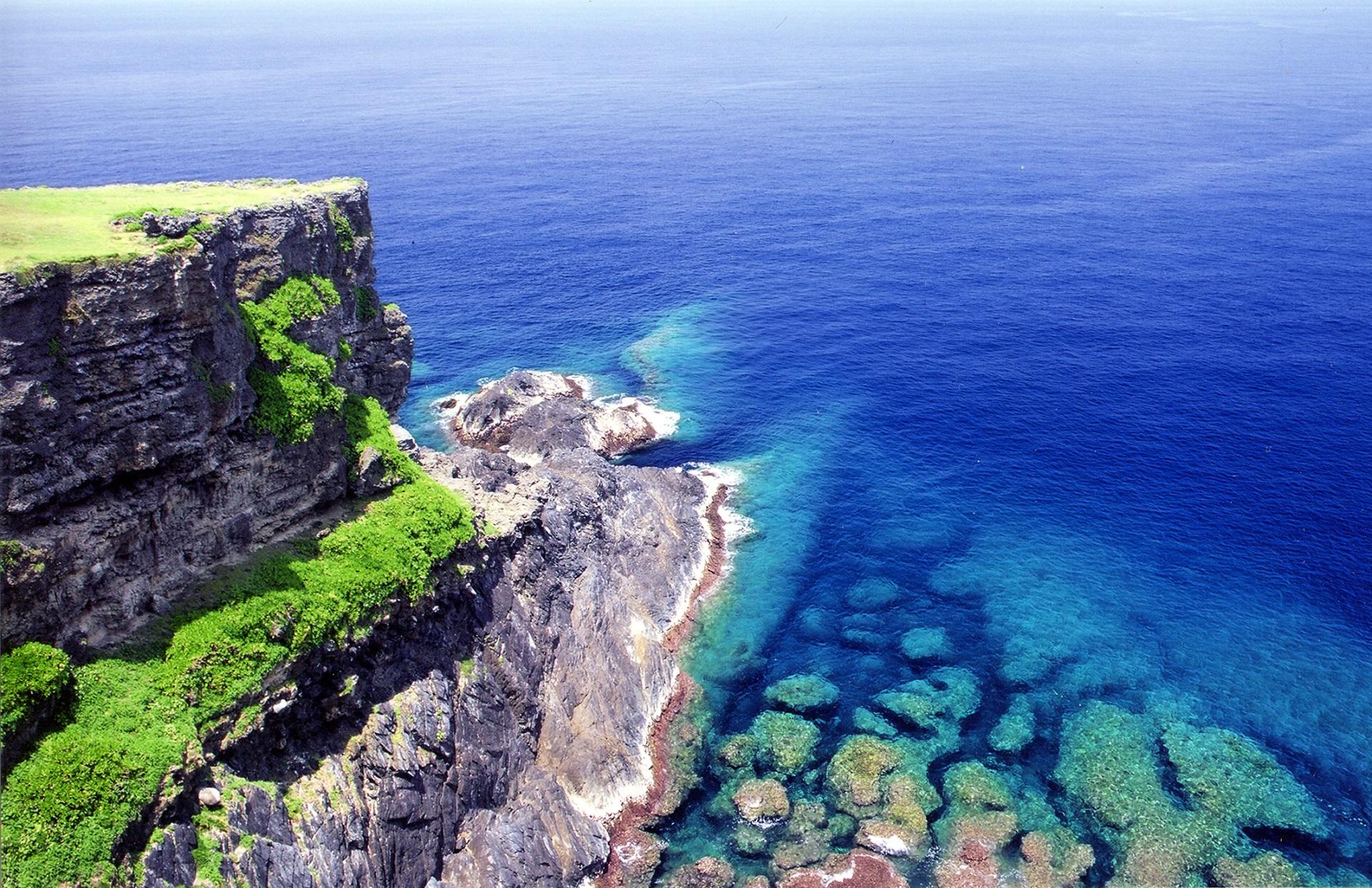 鹿児島県知名町の海岸景観「田皆岬」。奄美十景のひとつ、沖永良部島の北西端に位置する田皆岬は、高さ51メートルの断崖絶壁です。崖下に広がる透き通ったコバルトブルーの海には、ウミガメが泳ぐ姿が見えることもあります。すばらしい景観ですが『柵』がありませんので、足元にはご注意を。岬には知名町指定の天然記念物のカルスト地帯が広がっており、遊歩道もありますので、自然が作った芸術をゆっくりお楽しみいただけます。