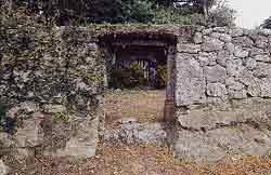 鹿児島県知名町の歴史的建造物「新城花窪ニャート墓」。この墓は1840年に沖永良部の代官として赴任し、1824年に座横目として再来島した鹿児島の城下士、遠矢金兵衛が妻子のために造ったものだと言われている。丘陵斜面を利用した横穴式屋根型で前庭があり、石壁で囲まれた入り口は鳥居型の石門がある。