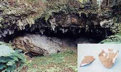 鹿児島県知名町の特殊地形「中甫洞穴」。昭和57年、58年、59年の三回に渡って調査された中甫洞穴出土の瓜形文土器、他に轟式土器、須恵器、人骨などが出土した。瓜形文土器の発見で沖永良部の歴史は一気に縄文時代草創期まで遡ることとなり、奄美最古の遺跡として注目された。