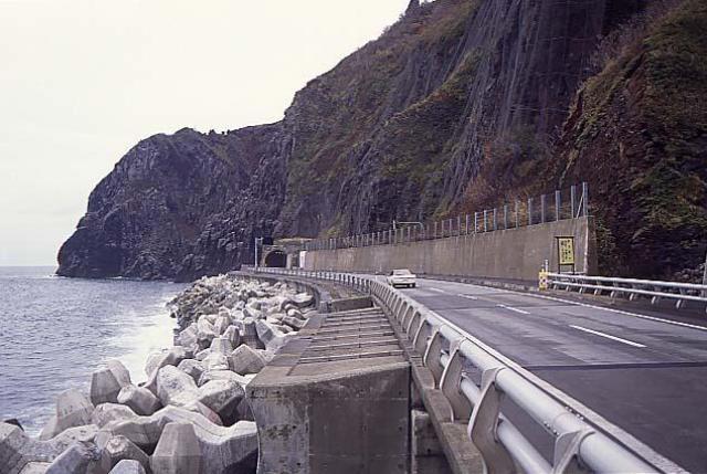北海道石狩市の海岸景観「雄冬岬」。暑寒別・雄冬山の山並が日本海になだれ落ちた岬。積丹や知床とともに道内有数の海岸景勝地。