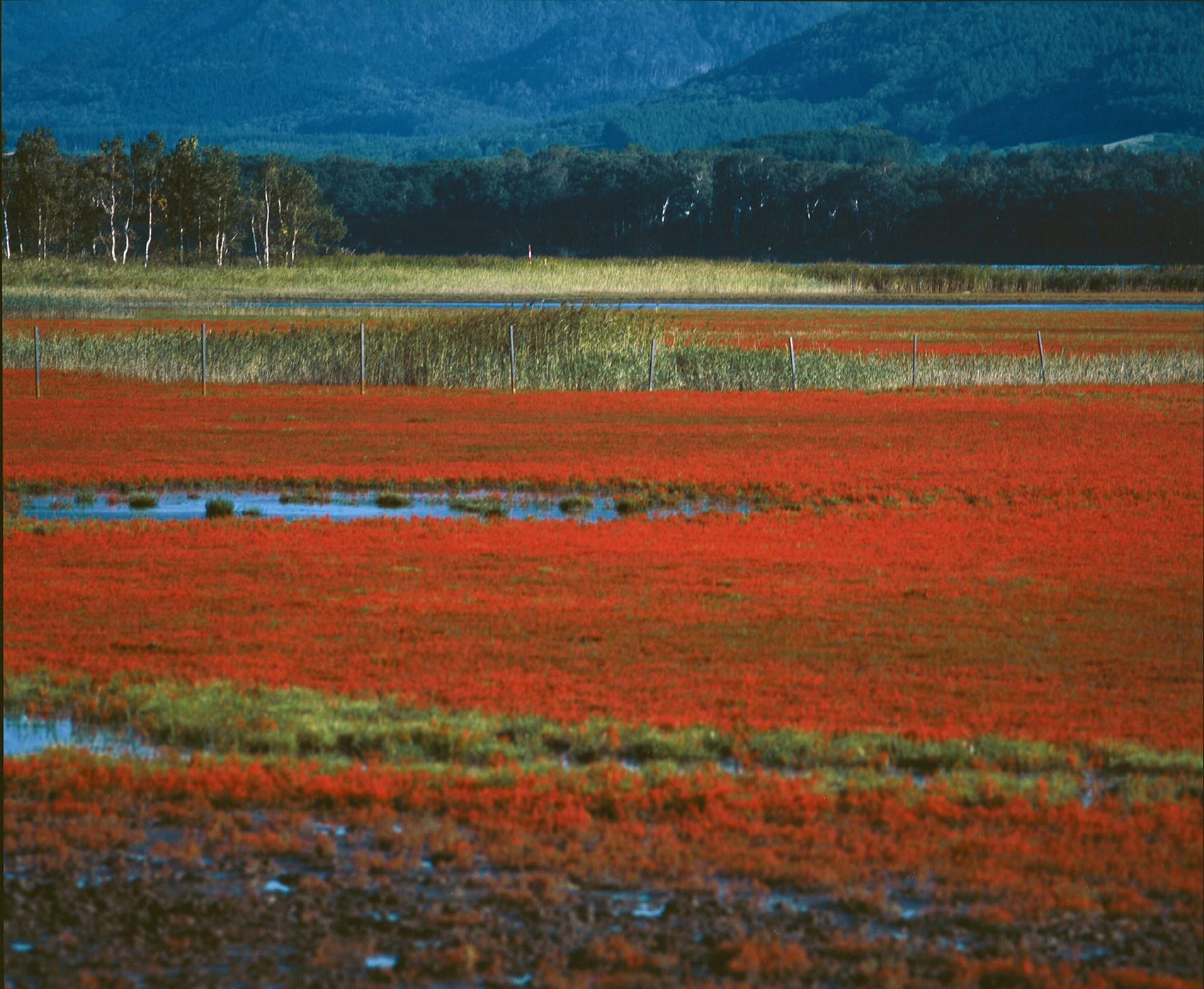 北海道佐呂間町の植物「佐呂間のサンゴ草」。例年、9月中旬から10月上旬にかけ、キムアネップのサンゴ草群落がサロマ湖を赤く染め上げます。美しさで知られるサロマ湖の夕陽が最も美しく感じられる季節です。