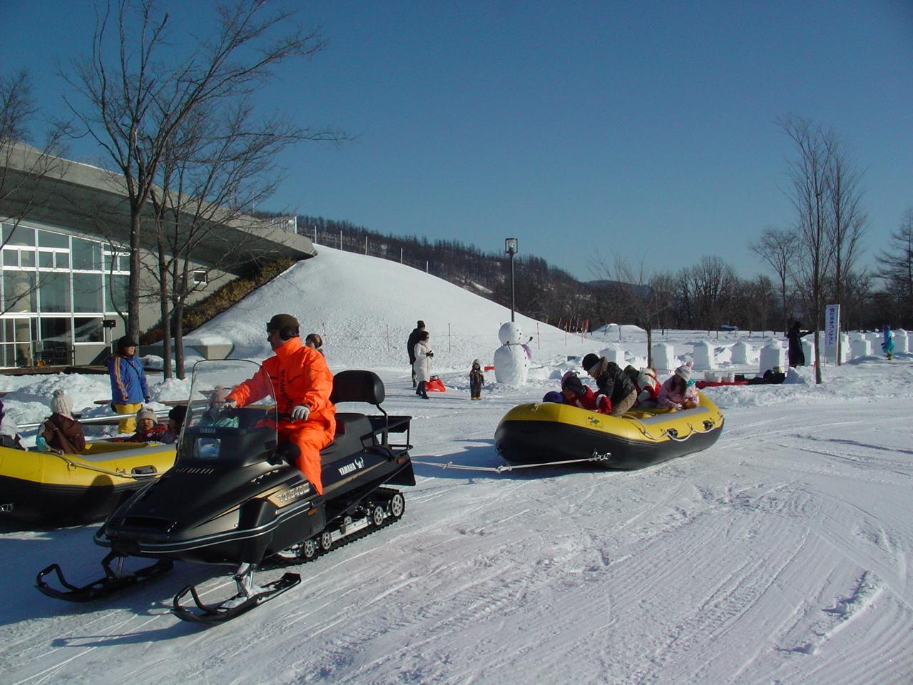 北海道音更町の行事・祭事「ウィンターフェスinエコパ」。スノーシューで歩く冬のフットパス(有料・積雪時)やクロスカントリースキー(コース利用無料、スキーレンタル有・積雪時)、スノーラフト森林ツアー&スノーチューブ(有料・積雪時)など冬の遊びが盛りだくさん!また、おいしいモール豚メニューや無料のモール温泉足湯なども楽しみの一つ。