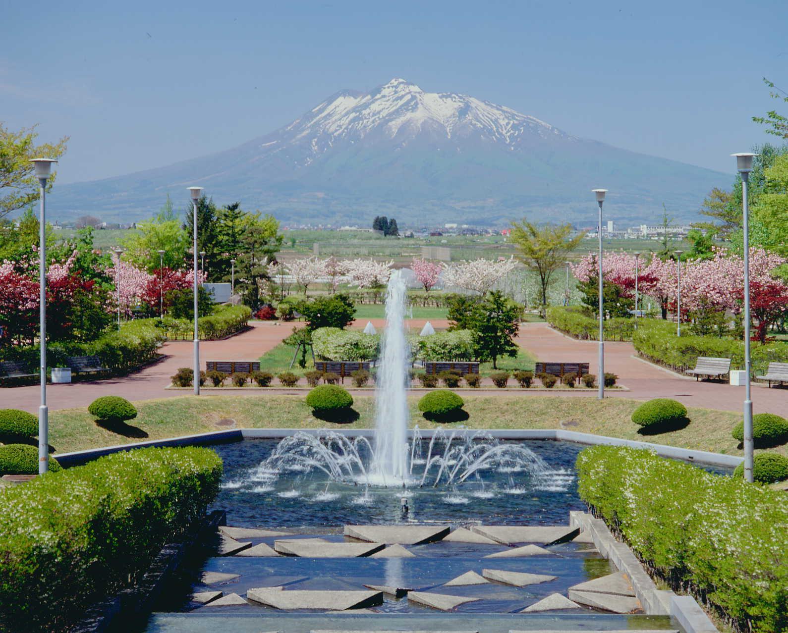 青森県平川市の公園「猿賀公園」。6.3haの広い面積を持つ猿賀公園は、津軽富士と呼ばれる岩木山を一望できる和洋折衷の公園です。四季折々の花や樹木が、様々な色彩で訪れる人々の目を楽しませてくれるほか、ボート遊びや鯉のエサやりができます。