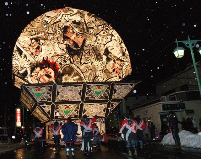 青森県平川市の行事・祭事「平川ねぷたまつり“冬の陣”」。青森県内唯一の冬のねぷたまつり。高さ11mを誇る「世界一の扇ねぷた」も迫力満点に運行します。