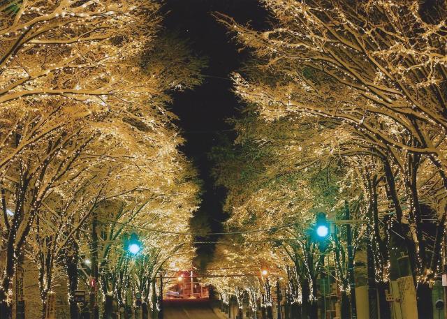 秋田県大館市のイベント「シャイニングストリート」。大館の冬を彩る、東北屈指の規模を誇るイルミネーション。大館市立総合病院前交差点から秋田看護福祉大学前まで約900mのけやきの街路樹87本と橋の欄干に、約30万個のLED電飾が施され、輝く光の道が出現します。初日に「点灯式」が行われるほか、12月31日には年越しを迎える「カウントダウン点灯式」が行われ、特別に翌日の夜明けまで点灯されます。そして、最終日には消灯式&冬花火が行われます。また、終了後には写真コンテストも行われます。