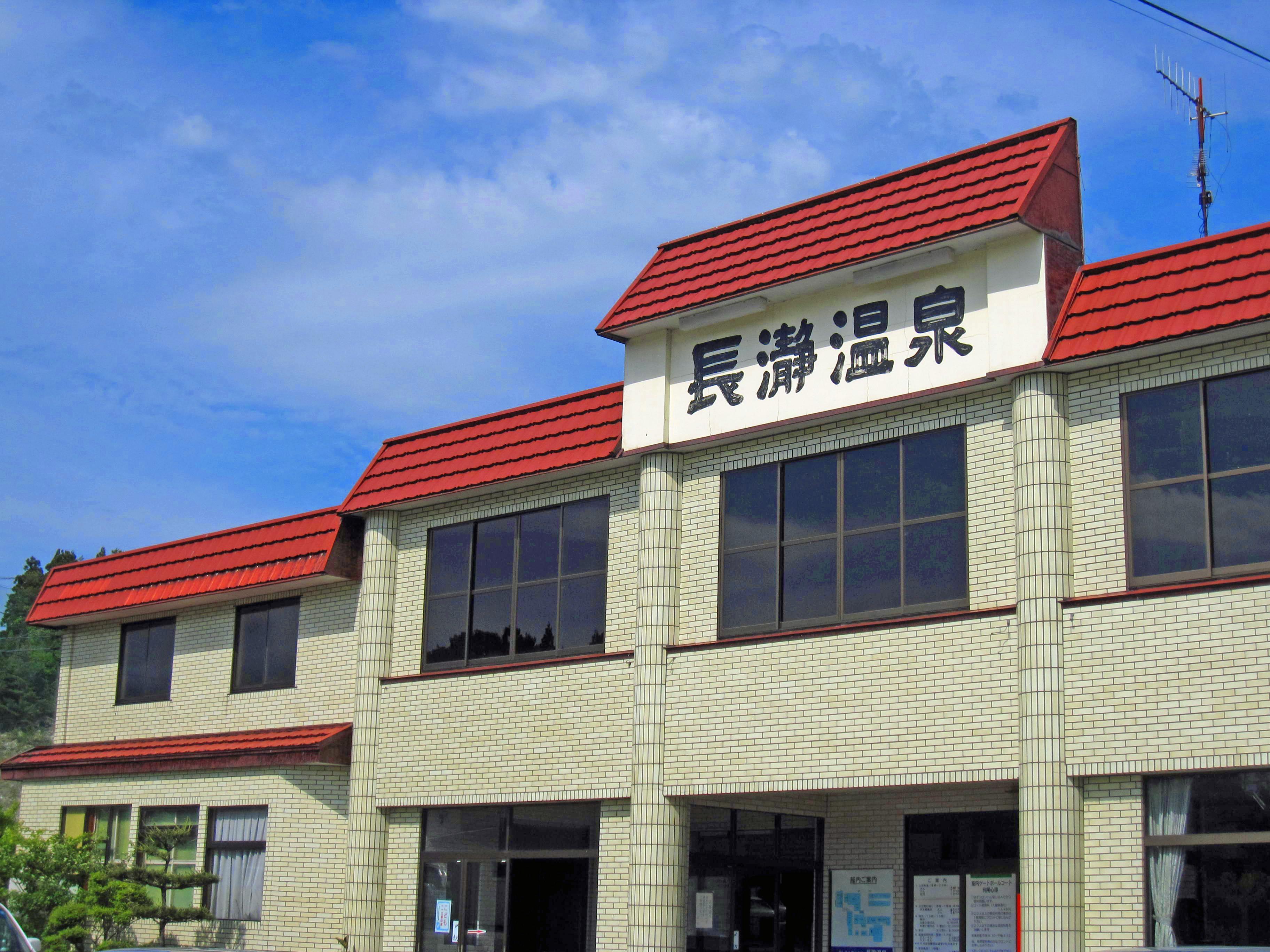 秋田県大館市の旅館「長瀞温泉」。国道7号線からほど近く、大館駅と下川沿駅の間にある温泉旅館。日帰り入浴も可能。