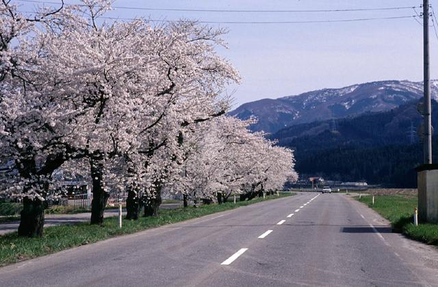 秋田県湯沢市の植物「役内川の桜並木」。雄物川沿いに約3km続く桜並木。花見客はもちろん、車窓からも見物客を楽しませてくれる。近くには「おしら様の枝垂れ桜」もあります。