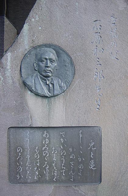 群馬県みどり市の名所「石原和三郎歌碑」。童謡の父と称される石原和三郎の代表作の1つである「うさぎとかめ」の歌碑が旧花輪小学校校庭に建てられている。