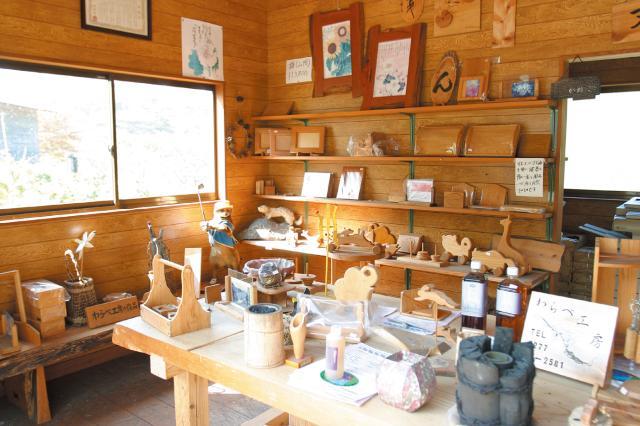 群馬県みどり市の産業観光施設「わらべ工房」。気軽に木工製品を製作できます。竹炭・木炭のほか、木酢液など各種炭製品も販売しています。