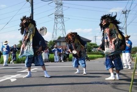 埼玉県久喜市の郷土芸能「八甫の獅子舞」。長禄年間(1457~1460)に鷲宮神社から分祀された八甫地区の鷲宮神社に伝わります。毎年7月24日に近い日曜日に、五穀豊穣・悪疫退散・氏子繁栄を祈願して行われます。鷲宮神社や光厳寺で舞うとともに村回りを行います。獅子は3頭で、大獅子・中獅子・女獅子からなり、他に笛方・歌方・岡獅子などの諸役があります。神社拝殿には、江戸時代中期のささらの大会で優勝し、館林領主から拝領された弓が掲げられており、神社の象徴とされています。