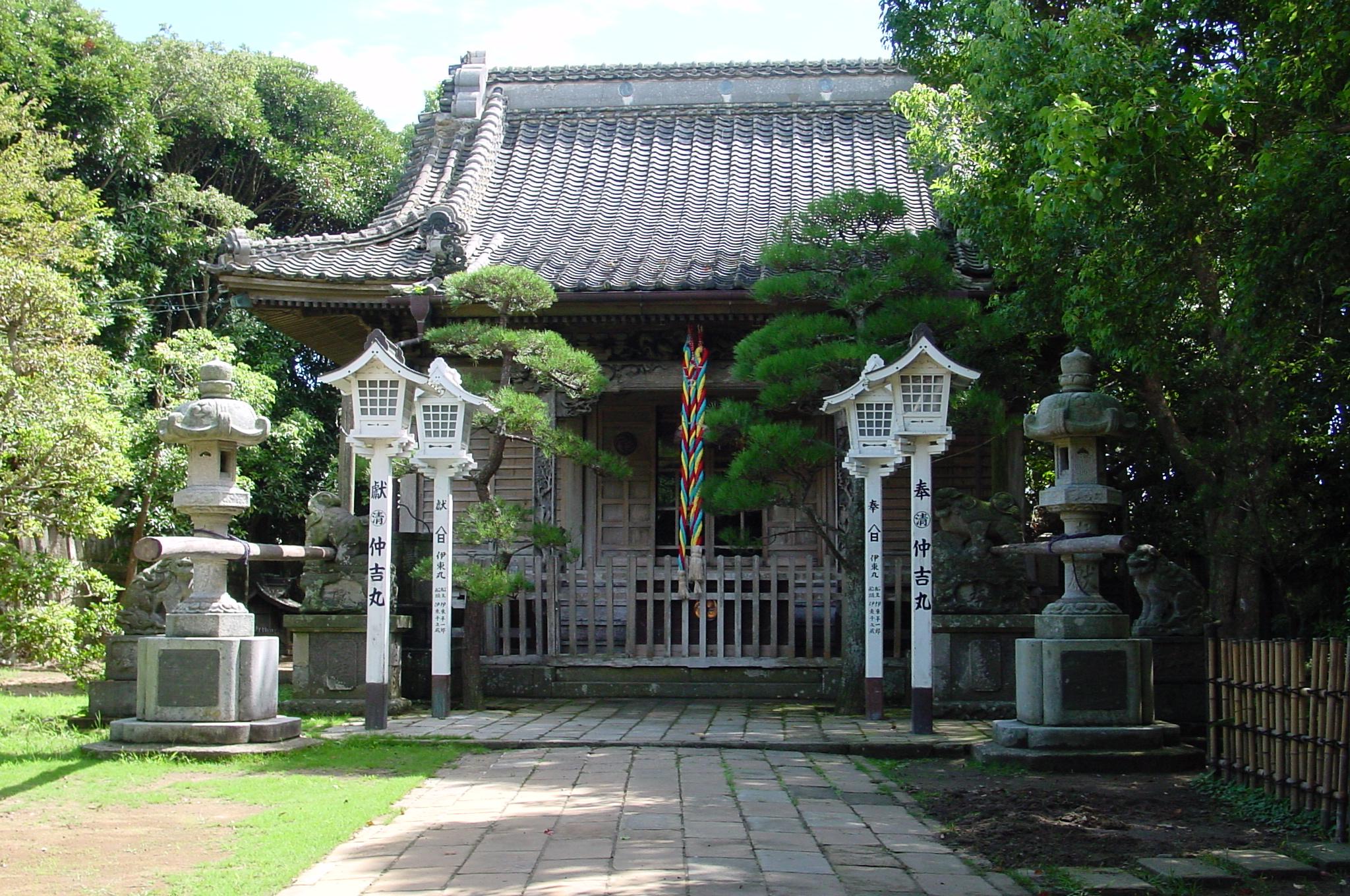 千葉県銚子市の神社・仏閣等「川口神社」。川口神社は、利根川の流れと銚子漁港の船の出入りが一望できる川口町の小高い丘の上にあります。寛和2年(986年)に創建の古社です。祭神は、速秋津姫命を祀っています。昔から利根川河口を出入りする漁船の船主や漁業関係者の守り神として、漁師の信仰が厚く、拠り所となってきました。また、白紙明神ともいわれ、あざ除けの祈願に訪れる女性も数多くいます。祭りは旧暦の6月15日に「大潮まつり」と称し行われています。