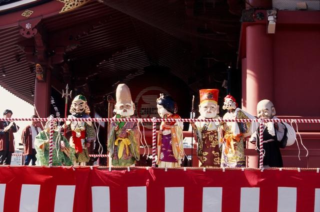 東京都台東区の郷土芸能「福聚の舞」。昭和39年(1964)の宝蔵門落慶を記念して創始された舞が「福聚の舞」です。福聚とは「観音経」にある「福聚海無量:観音さまが備えている海のごとき福徳の聚り」から名付けられたもので、節分会で奉演される「七福神の舞」と5月5日の端午の節句に奉演される「宝の舞」とがあります。