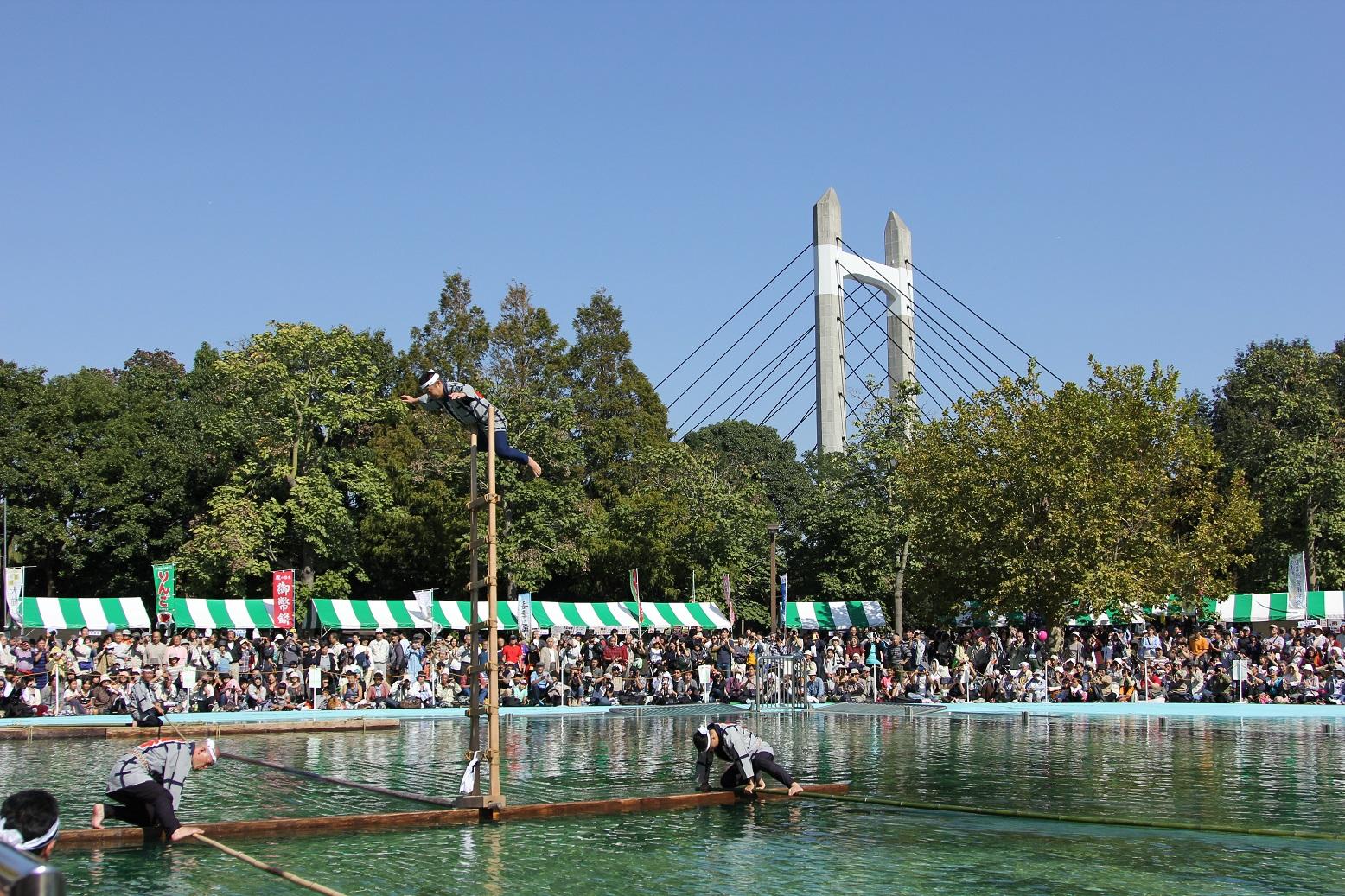 東京都江東区の行事・祭事「江東区民まつり中央まつり」。「深川の力持」、「木場の角乗」などの民俗芸能の公開のほか、パレードをはじめ、全国各地の特産品の販売やステージイベントなど、楽しい催しものがいっぱいです。