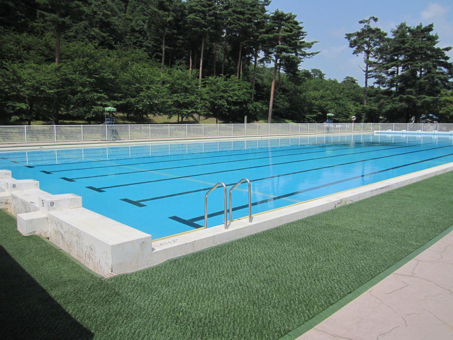 新潟県五泉市のスポーツ・リゾート施設「五泉市村松プール」。村松公園に隣接する屋外市民プール●施設概要:大プール50m×19m、小プール15m×10m