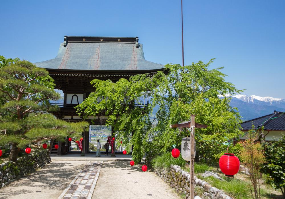 長野県豊丘村の神社・仏閣等「泉龍院」。室町中期、物外性応禅師により開山。室町時代~江戸時代にかけての仏像・庭園・山門等が古刹の風格を漂わせます。泉龍院山門は文政元年戊寅(1818)11月、第26世快芳悦厳和尚の時に建立されました。間口7.2m、奥行6.3m、高さ12.8mの二層楼で、各礎石の上に12本の丸柱を立て、大斗をのせ、三手先の斗組によって楼上の桁を受けています。境内の三色藤も有名で、甘い香りと共に白・紫・桃の三色の花が咲き誇る様は見事です。