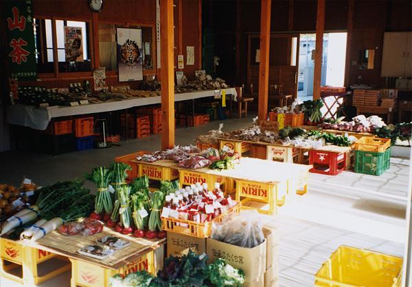 岐阜県下呂市のショッピング店「朝取横丁」。「ウェルネスぬくもりの里」内の「道の温泉駅かれん」に隣接する地元農産物直売所。地元金山ならではの特産品(生野菜・ひじり茸・米・お茶・木製品など)の販売は、地元生産農家を中心とした組織で構成されているため、お値打ちに安心して購入できます。