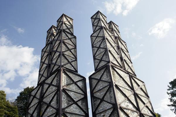 静岡県伊豆の国市の史跡「韮山反射炉」。江川英龍父子が造り、砲数百門を鋳造したという耐火レンガ製の反射炉。煙突と炉跡が残っている。近代鉄鋼業発祥のシンボルといえる。国指定史跡、近代化産業遺産。平成27年度の世界遺産登録を目指している。
