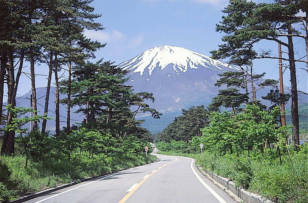 静岡県小山町の名所「ふじあざみライン」。ふじあざみラインは、冨士浅間神社と須走口五合目を結ぶ登山道(静岡県道・足柄停車場富士公園線)。全長11.4kmで、全線舗装されています。松並木や馬返し、狩休などのポイントがあり、古くは馬車で登ったといわれるほど広かった須走口登山道の面影が偲ばれます。冬期(11月~4月)は、閉鎖されます。