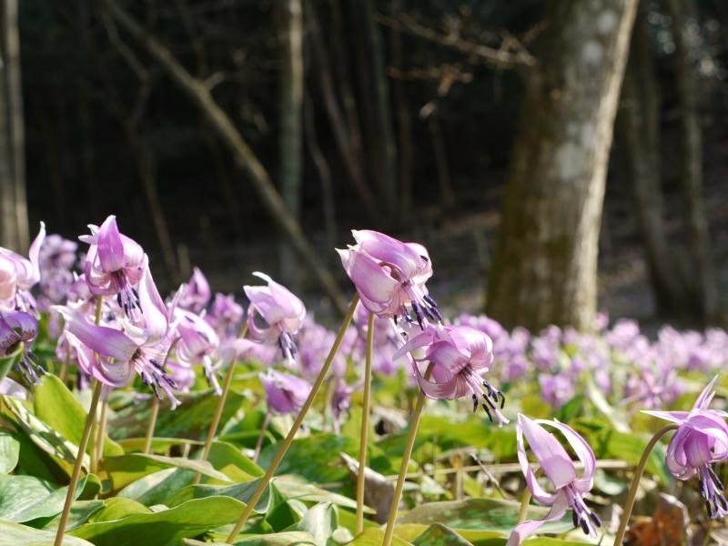 兵庫県丹波市の植物「カタクリの花群生地」。見頃は4月初旬で春先、くぬぎ林の中にひっそりと群れ咲く薄紫の華麗な花は、さながら紫の絨毯のようです。かたくりの花はユリ科の多年草で、花が咲くまでに7~8年かかると言われています。雨や、曇りの日にはつぼみのままの姿で、晴れた日にしかその可憐な姿を見ることができません。また、丹波市氷上町はかたくりの南限と言われており、毎年多くの観光客やカメラマンが訪れています。4月の第1日曜には、かたくり祭りも開催されておりたくさんのお客さんでにぎわいます。春の訪れを告げる妖・・・