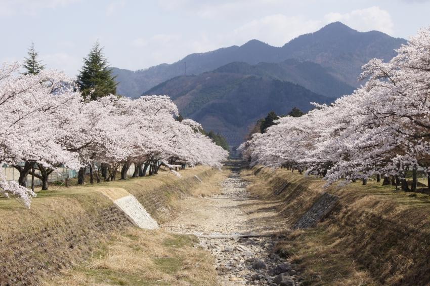 兵庫県丹波市の植物「倉町野桜の園」。丹波少年自然の家近くを流れる「倉町川」沿いに、約600本のソメイヨシノや山桜が春の丹波を彩ります。