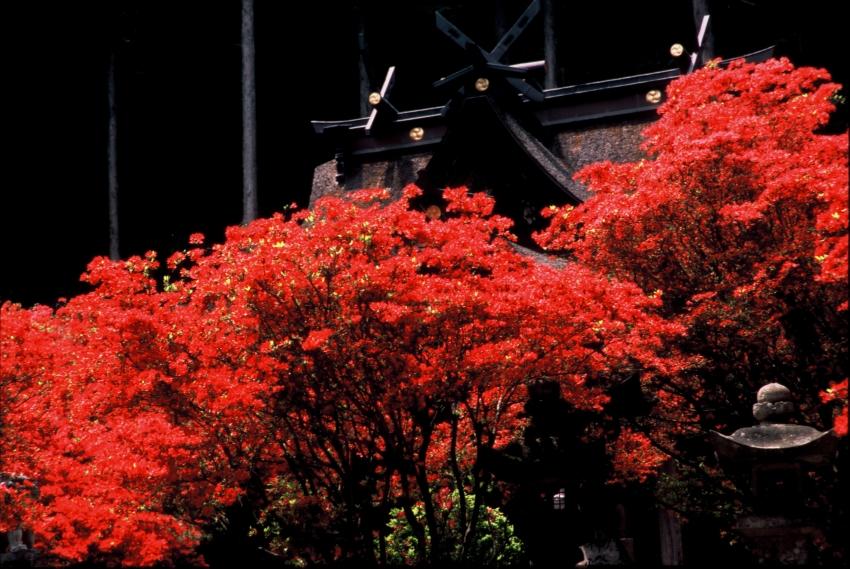 兵庫県丹波市の植物「一ノ宮神社」。鮮やかな紅色のキリシマツツジが群生丹波市氷上町上成松の一ノ宮神社では、5月初旬になるとつつじ科の霧島が咲き誇ります。紅色の花が境内をうめつくし、訪れる人々の目を楽しませてくれます。