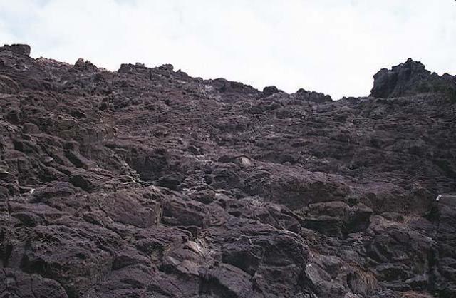 兵庫県香美町の特殊地形「下浜の流痕」。下浜海岸から三田浜への道路端の崖に見られる。約2,000万年前の古浜坂湖の湖底にできた波の形の化石。