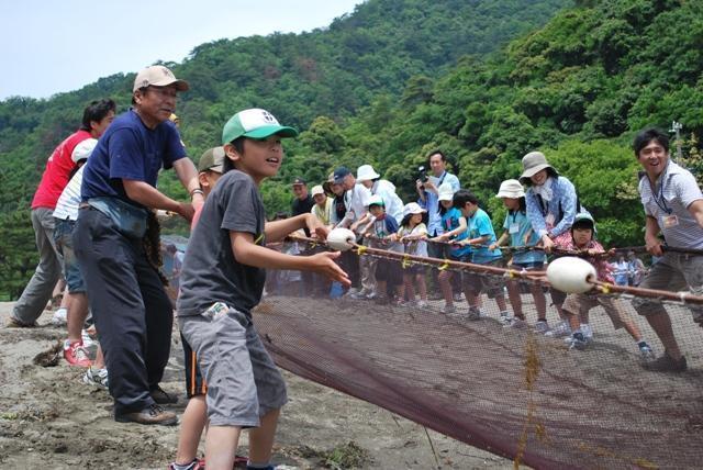 兵庫県香美町の観光漁業(体験含む)「地曵網」。海に大きな網をしかけ、ロープで引っ張る昔ながらの漁法。アジ、イカ、スズキ等の旬の魚をゲットしよう!