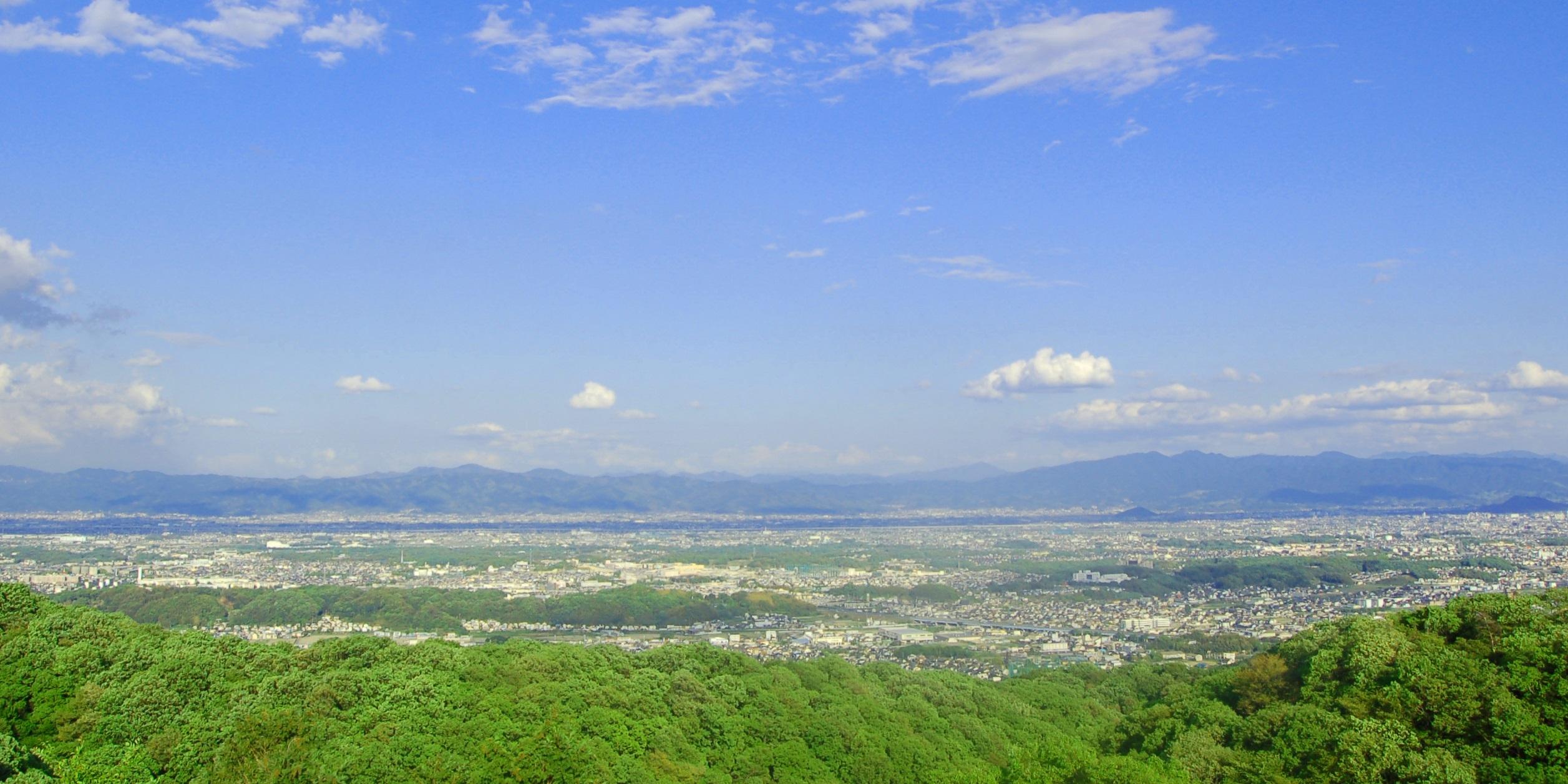 奈良県王寺町の山岳「明神山」。大和川をはさんで信貴山と向かい合う明神山(標高273.7m)は、金剛山脈の最北端にあり、西側は大阪府に属しています。この頂上からは360度のパノラマが楽しめ、大阪平野や奈良盆地が一望できるのはもちろん、晴れた日には明石海峡大橋を見ることができます。ハイキングコースは変化に富み、春には山ツツジが咲き誇るなど、おおらかな自然環境を満喫することができます。